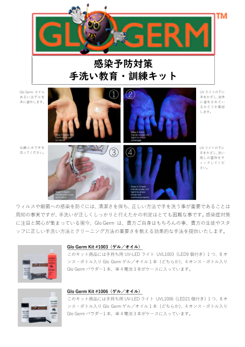 ウィルスや細菌への感染を防ぐには、清潔さを保ち、正しい方法で手を洗う事が重要であることは周知の事実ですが、手洗いが正しくしっかりと行えたかの判定はとても困難な事です。 感染症対策に注目と関心が集まっている現今、Glo Germ は、貴方ご自身はもちろん...