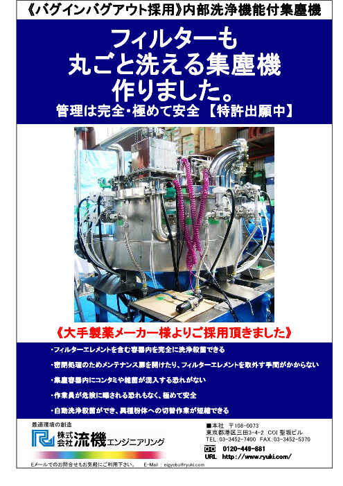 フィルターを取り外さずに自動洗浄・乾燥可能な集塵機!大手製薬メーカーの造粒工程で採用...