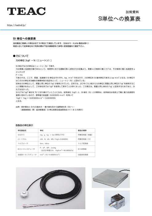 当社製品に関連した単位は全てSI単位にて表記しています。(台はかり・Kulite製品...