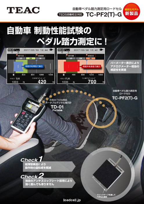 薄型リニューアル!自動車性能試験のペダル踏力測定に!
