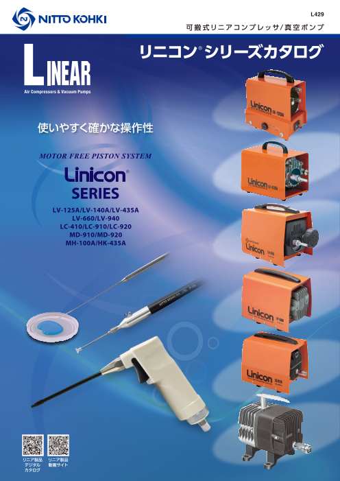 当カタログは、『リニコンシリーズ』をご紹介しています。 「リニコン」とは、電源コンセント、スイッチ付きですぐに使用できる 持ち運び可能なエア・真空源です。 真空ポンプ「LV-125A/LV-140A」や「LV-435A」などのリニコンシリーズ機...