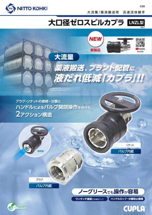「大口径ゼロスピルカプラ」は、大流量かつ配管分離時の液だれを低減した 迅速流体継手です。大口径でありながら接続しやすい構造を採用しております。 【特長】 1.配管分離時の液だれ低減 2.セーフティロック機構を搭載 3.ワンタッチ接続 4....