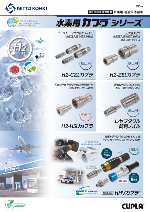 当カタログは、水素社会の中で弊社の迅速流体継手や リニアコンプレッサが活用できる場面を掲載した製品活用事例集です。 【掲載製品】 1.H2-CZLカプラ(低圧用) 2.H2-HSUカプラ(中圧用) 3.HHVカプラ(高圧用) 4.VC01...