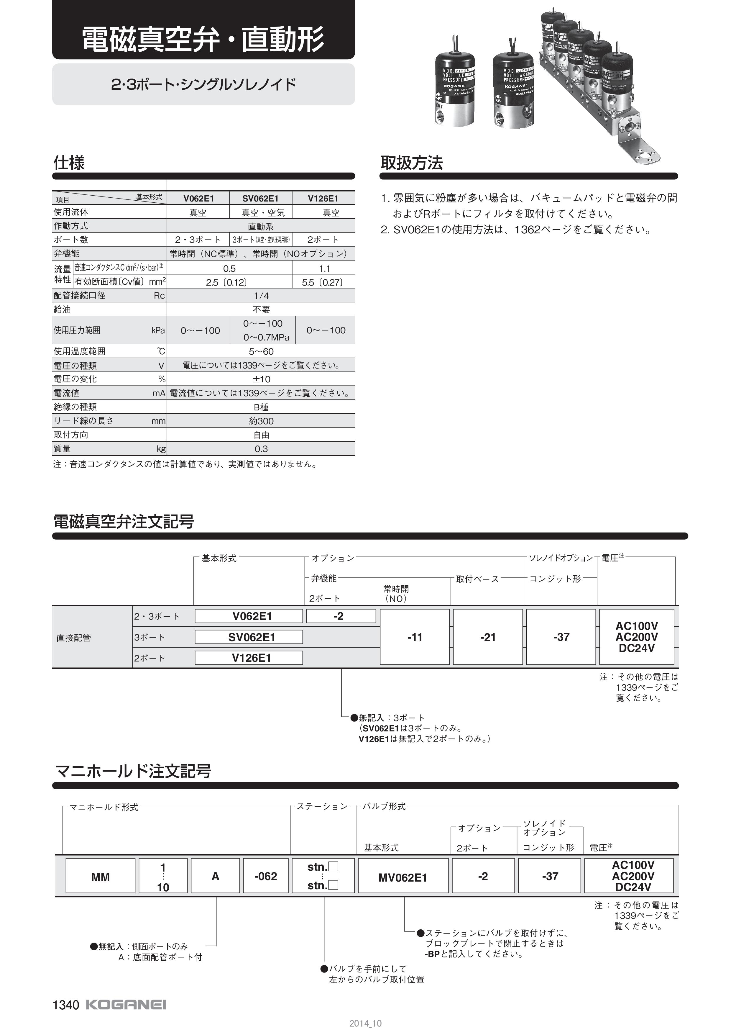真空丸形電磁弁V062・V126シリーズ