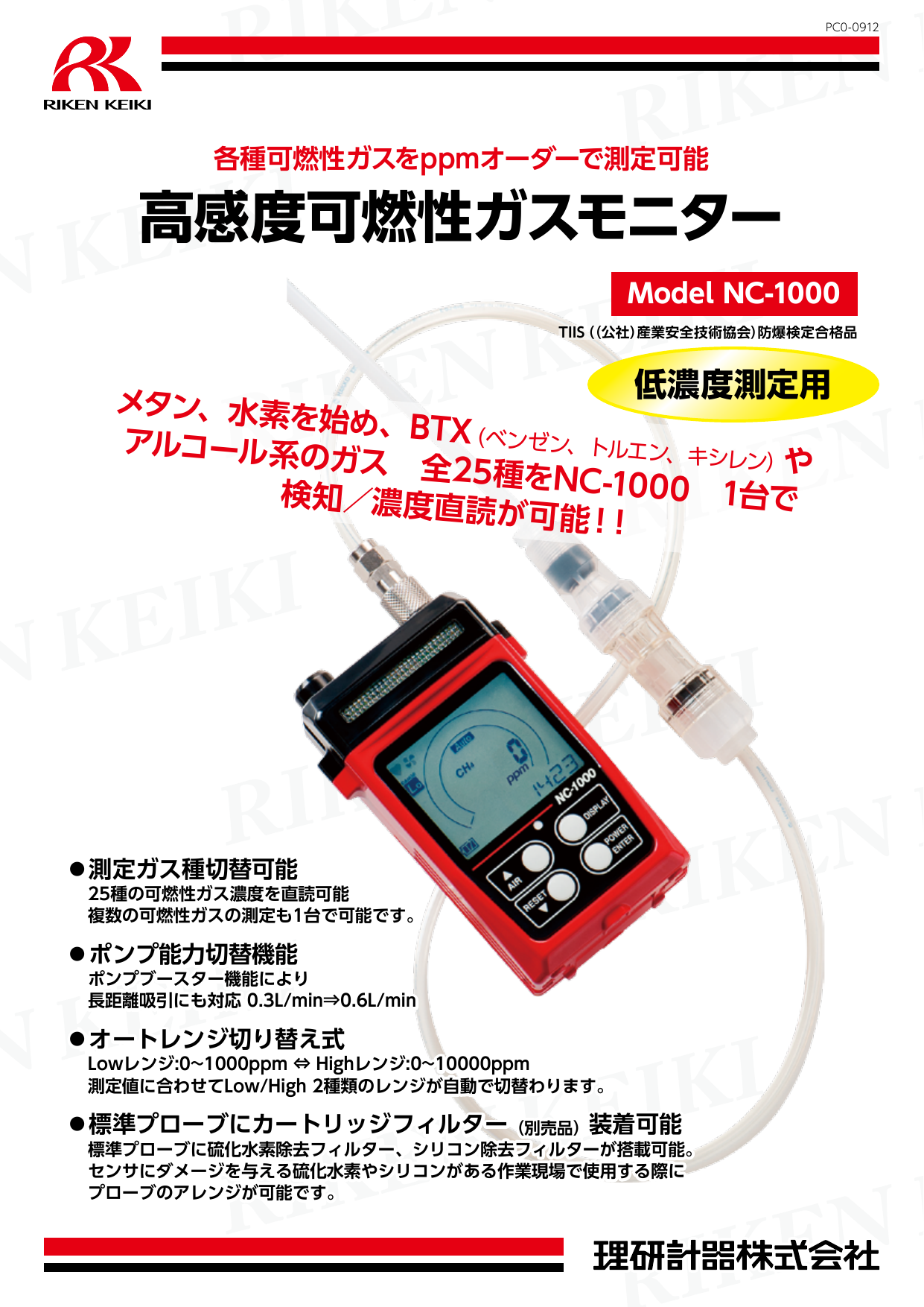〇 検知ガス種切替機能により、25種類の可燃性ガス (メタン、水素、ベンゼン、トルエン、キシレン等)を 1台で検知可能 〇 ポンプブースター機能で長距離吸引にも対応 (吸引流量:0.3L/min⇒0.6L/min) 〇 カートリッジ...
