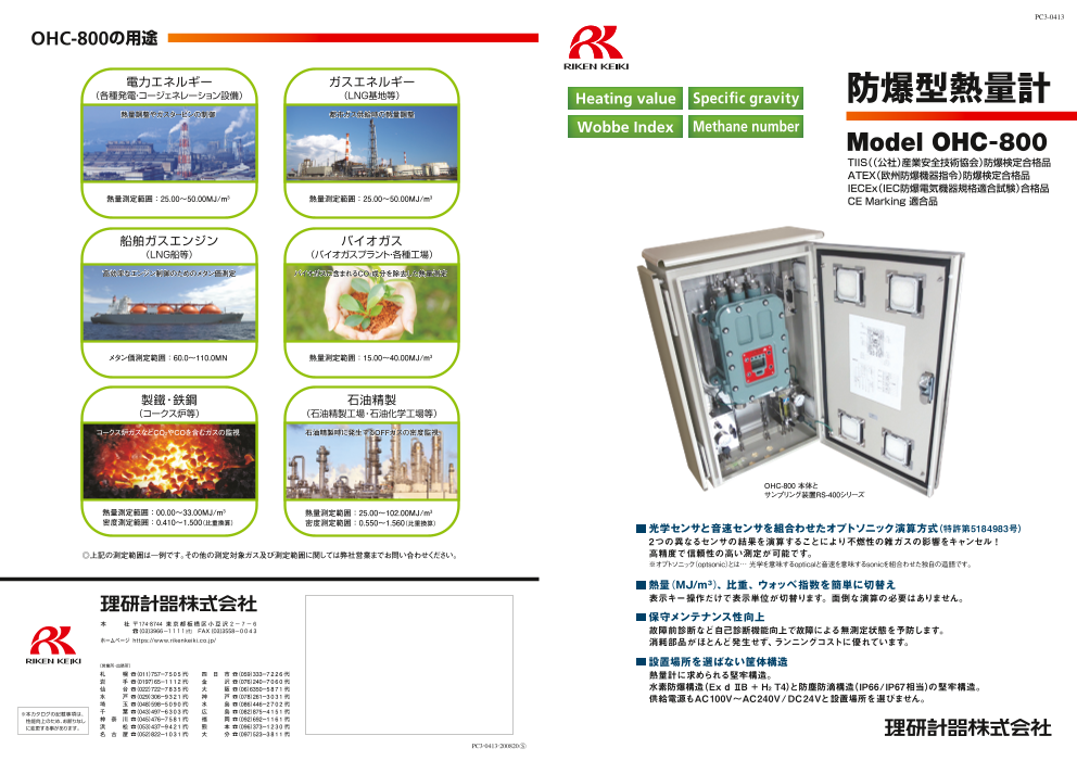 〇 理研計器独自のオプトソニック演算方式を採用(特許第5184983号) 〇 熱量(MJ/m3)、比重、ウォッベ指数を簡単に切替え 〇 保守メンテナンス性向上 〇 設置場所を選ばない筐体構造