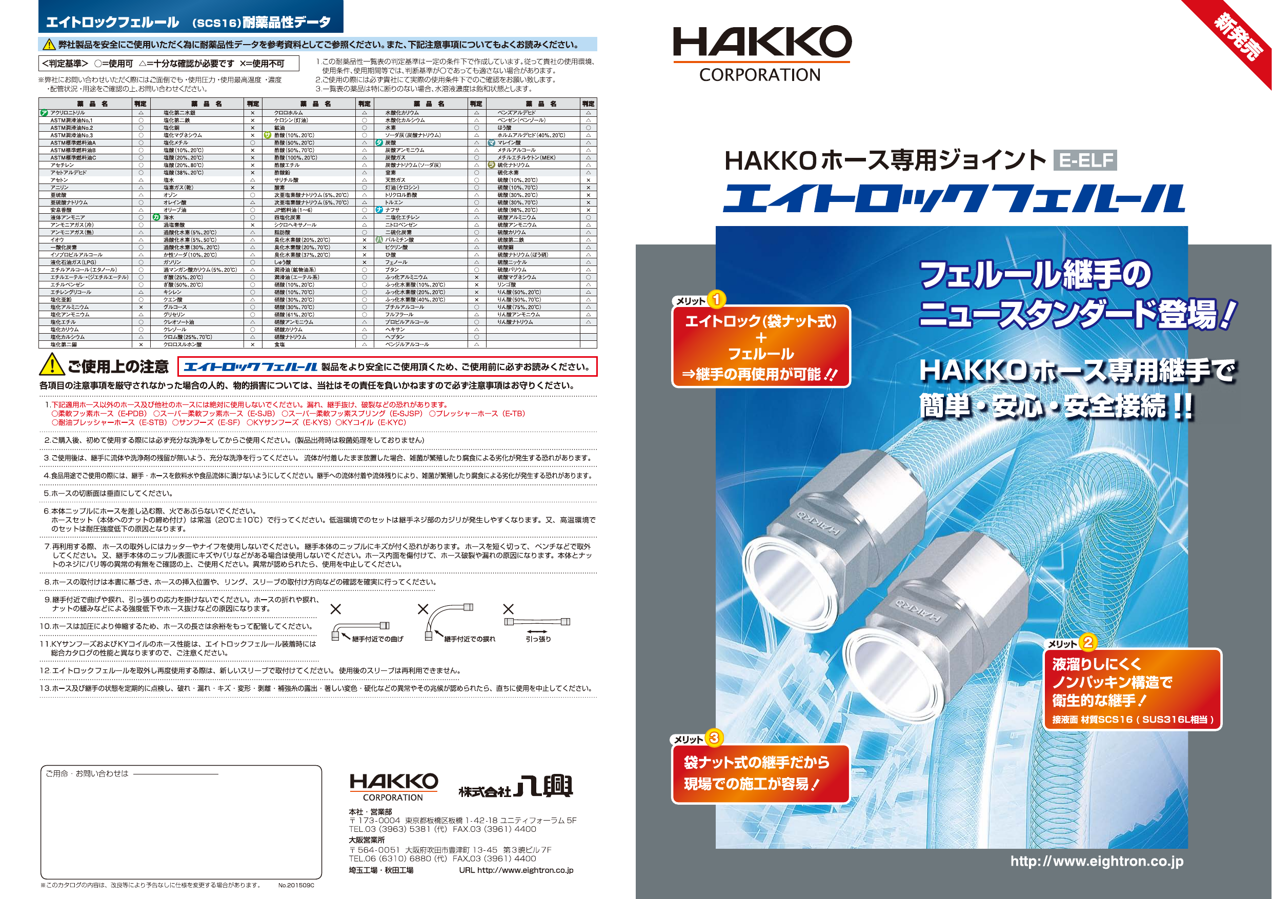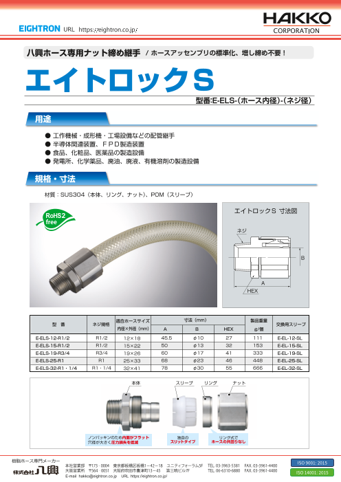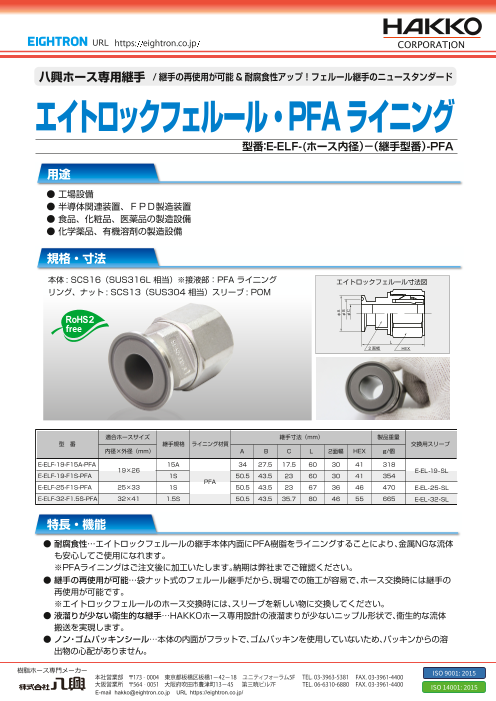 エイトロック(袋ナット式)+フェルール⇒継手の再使用が可能!! 液溜りしにくくノンパッキン構造で衛生的な継手! 袋ナット式の継手だから現場での施工が容易!