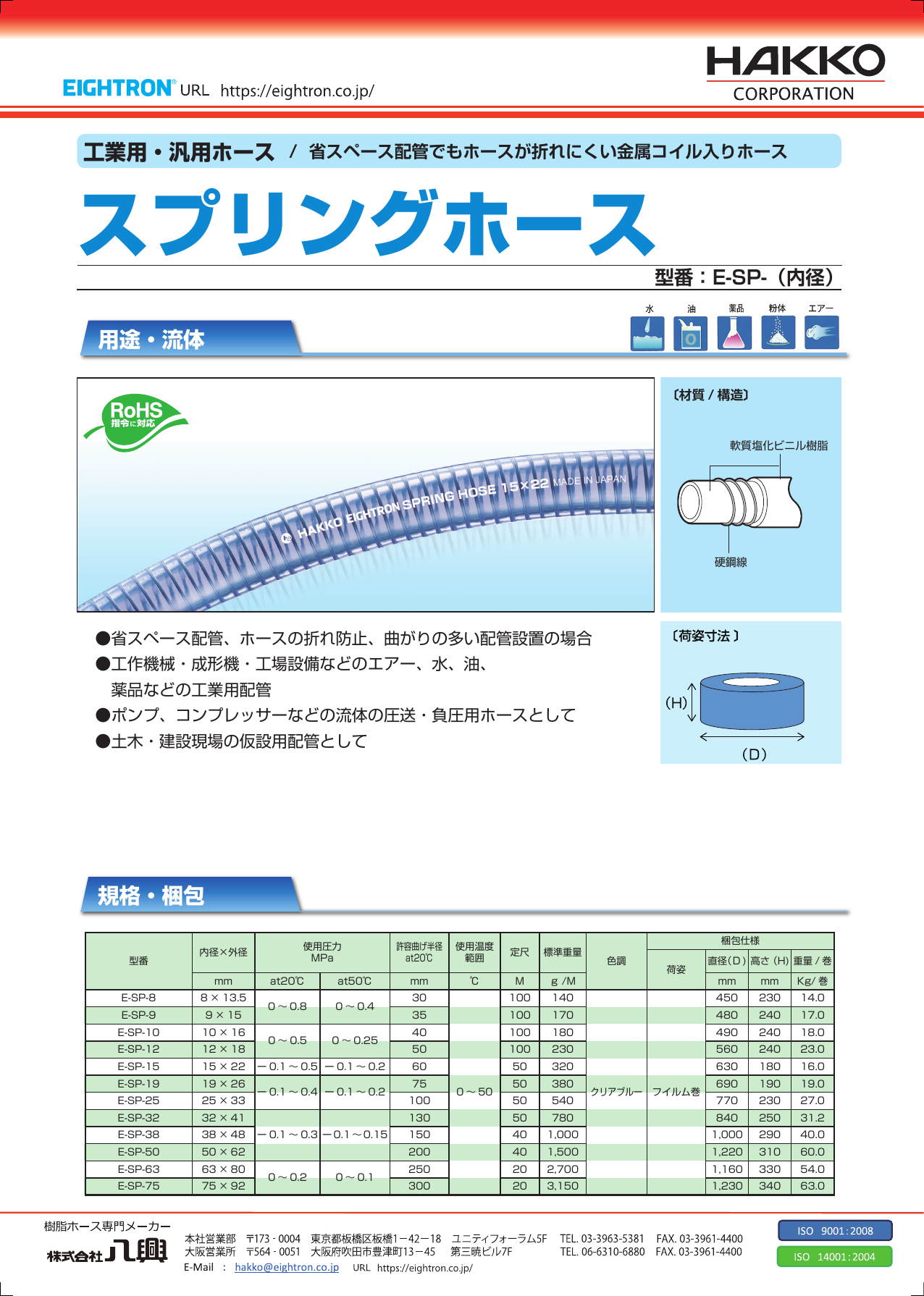 柔軟性に優れ、お湯(~70℃)、食品、飲料、油脂脂肪性食品の移送に使用できます。 特殊耐油可塑剤の採用により、従来の塩ビホースと比較して油に硬化しにくく耐久性に優れます。 ●食品・飲料・醸造用として ●理化学などの実験機器用として ●工場の温水洗...