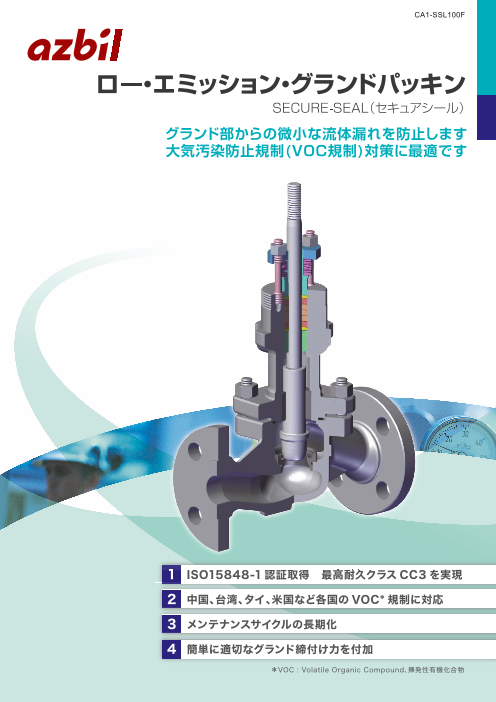 セキュアシールは、調節弁グランド部からの流体漏えい量を最小にして、大気汚染を防ぎ、プラントで働く仲間の健康を守るグランドパッキンシステムです。 第三者認証機関による調節弁グランド部とガスケット部のシール性能を定める唯一の国際規格 ISO15848-1...