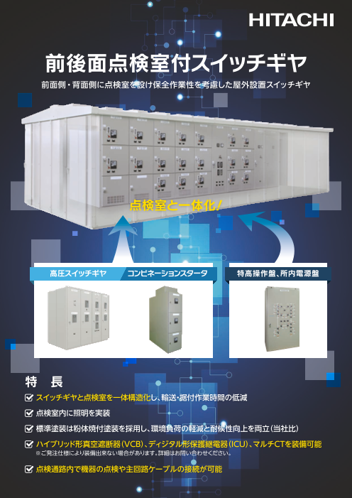 ・スイッチギヤと点検室を一体構造化、電気室と同様の保全性・運用が可能 ・点検室内に照明を実施。夜間や停電時でも安全な保全作業が可能 ・塗装は粉体焼付塗装を採用し、環境負荷の軽減と耐候性向上を両立 ◆詳細はカタログをダウンロードしてご覧下さい。