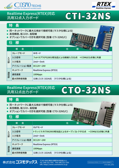 RealTimeExpress(RTEX)に接続可能な16点入力ボード「CTI-32...