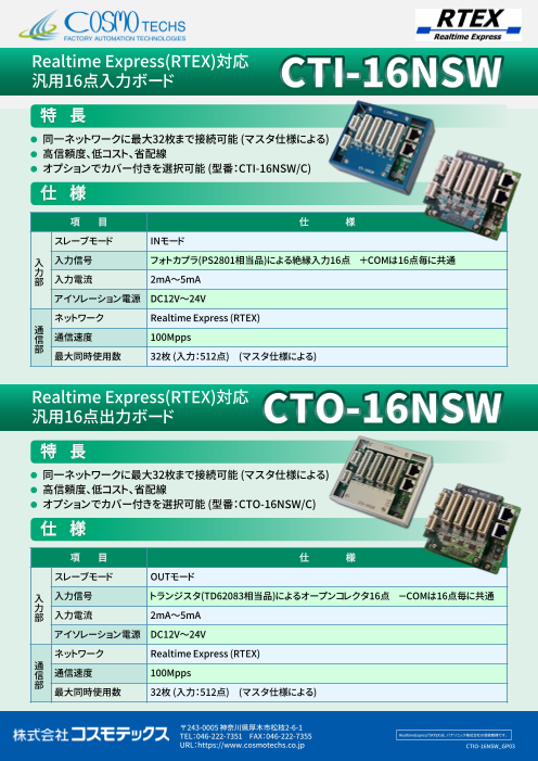 RealTimeExpress(RTEX)に接続可能な16点入力ボード「CTI-16...