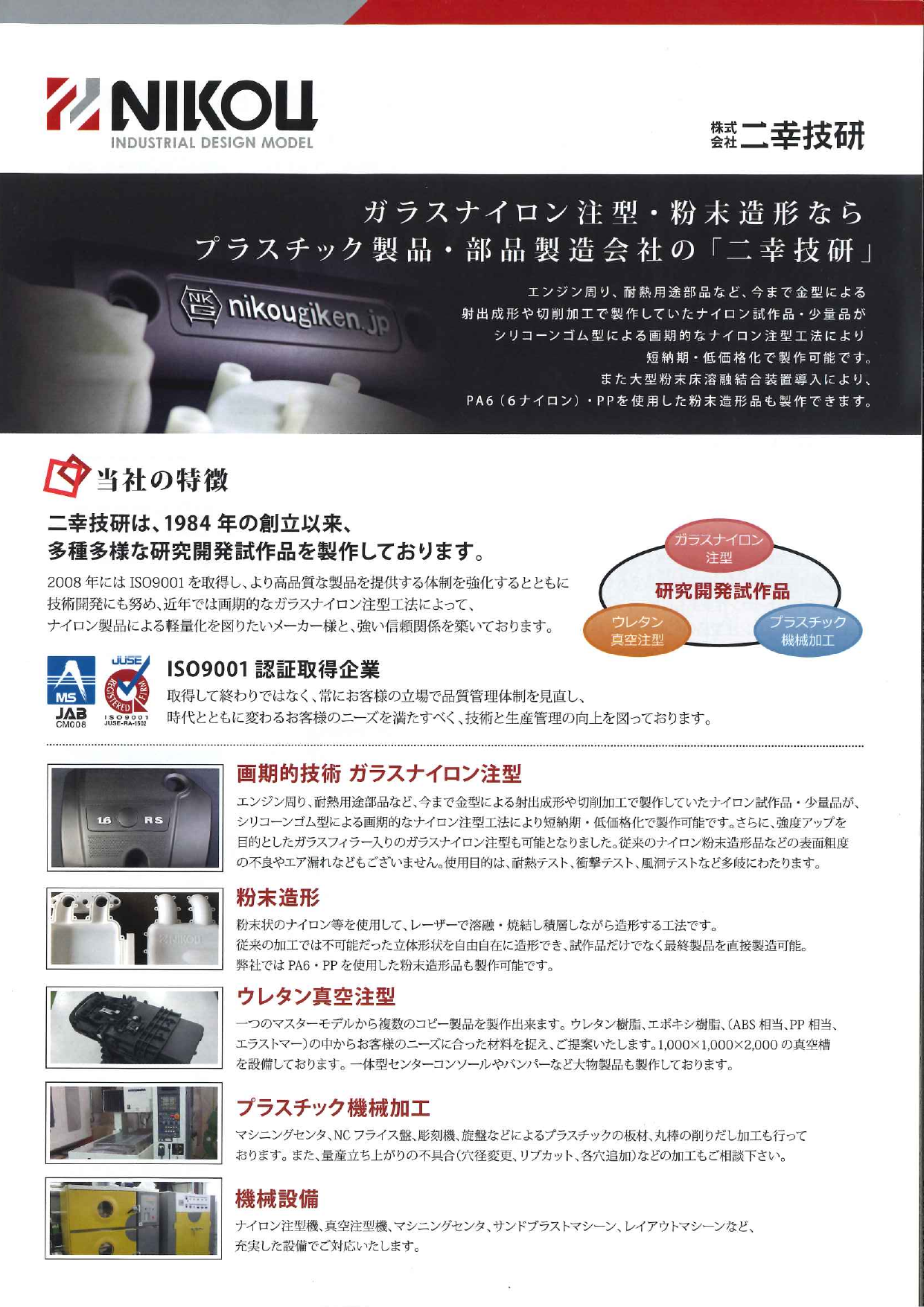 ガラスナイロン注型・粉末造形ならプラスチック製品・部品製造会社の「二幸技研」