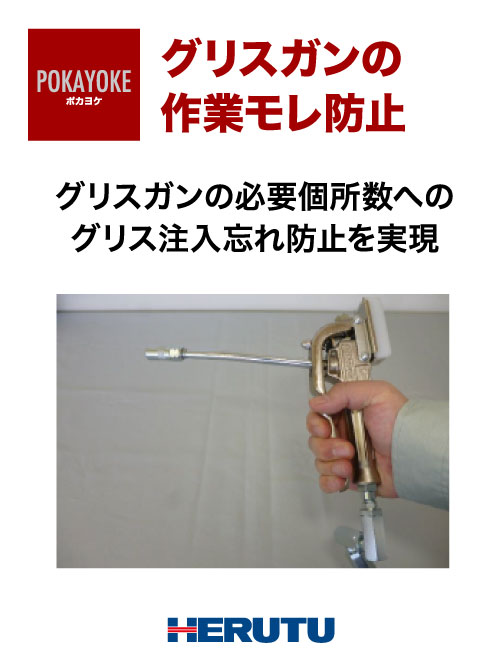 農業機械の製造工程でグリスを注入するツール「グリスガン」の 作業モレ防止を行いたいとのご要望をいただきました。 製造品目が多品種であり、グリス注入箇所数が異なるため「グリスガンは 使用されたが、グリスが必要箇所数に注入されない」という不具合が発...
