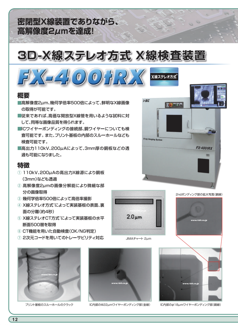 高出力130kVのX線源により20層以上の多層基板やバワーデバイス検査に最適! FX-500tRX2は、「X線ステレオCT方式」を用いてパワーデバイスのバスバー下部、パワーチップ下部、絶縁基板の下部のはんだ部を個別に検査することができます。通常のX線の...