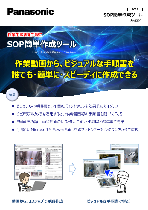 ビジュアルな手順書で、作業のポイントやコツを効果的にガイダンス ウェアラブルカメラを活用すると、作業者目線の手順書を簡単に作成 動画からの静⽌画や動画の切り出し、コメント追加などの編集が簡単 手順は、Microsoft® Power...