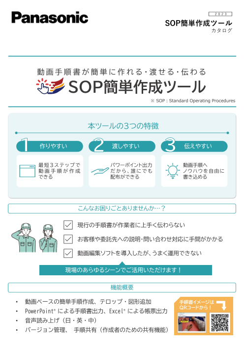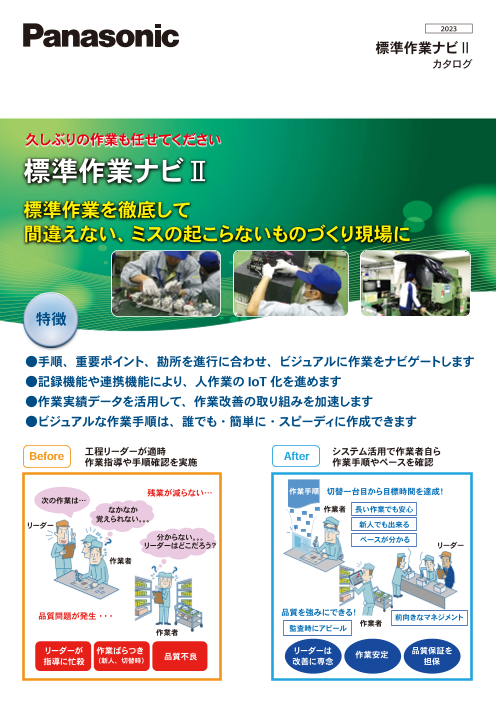 ⼿順、重要ポイント、勘所を進⾏に合わせ、ビジュアルに作業をナビゲートします 記録機能や連携機能により、人作業のIoT化を進めます 作業実績データを活用して、作業改善の取り組みを加速します ビジュアルな作業⼿順は、誰でも・簡単に・スピ...