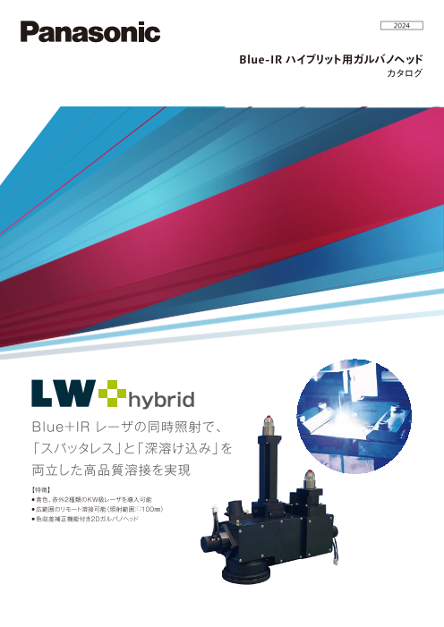 【特徴】 ・赤外、青色2 種類のKW 級レーザを導入可能 ・高範囲のリモート溶接可能(照射範囲 : □100 ㎜) ・色収差補正機能付き2D ガルバノヘッド