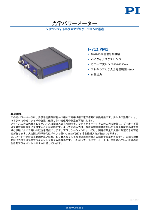 この光パワーメータは、光信号を高分解能かつ極めて高帯域幅の電圧信号に変換することが可能です。 ファイバ入力の代替として、外部からの電流入力も可能で、フォトダイオードを接続し、ダイオード電流を変換することができます。 光パワーメータの波長範囲が...