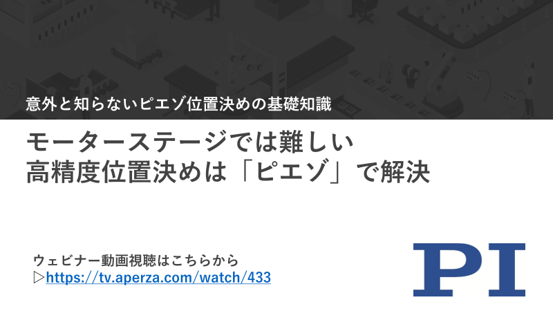 半導体製造における位置決め製品はここ10年はモーターステージが主流。しかし、グリス・摩擦による位置決め精度や使用環境の適合など課題もあります。今回は、ピエゾでお馴染みのピーアイ・ジャパンがあらためてピエゾの原理や特徴を分かりやすく解説!ピエゾについて知っ...