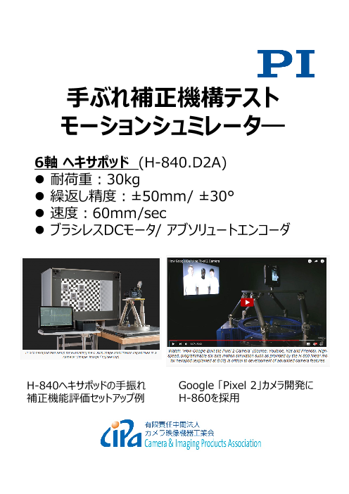6軸 ヘキサポッド(H-840.D2A) ・耐荷重:30kg ・繰返し精度:±50mm/ ±30° ・速度:60mm/sec ・ブラシレスDCモータ/ アブソリュートエンコーダ ◆詳細は、カタログをダウンロードしてご覧ください。