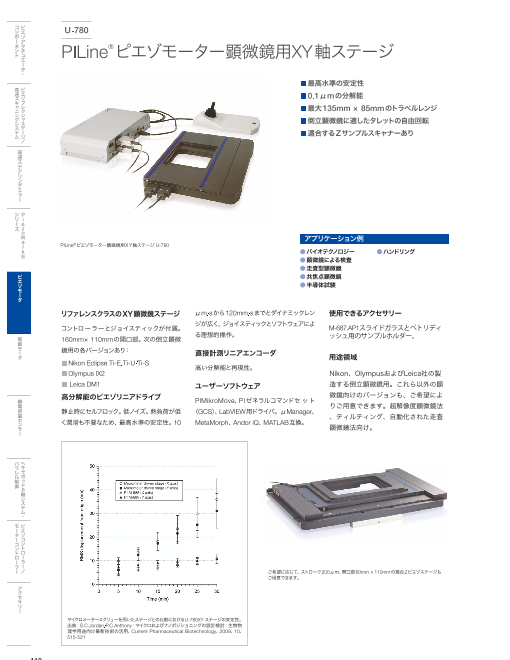 PI社の製品をジャンル別にご紹介したパンフレットです。ピエゾアクチュエータからモーターステージと多彩なラインナップを1冊にまとめました。