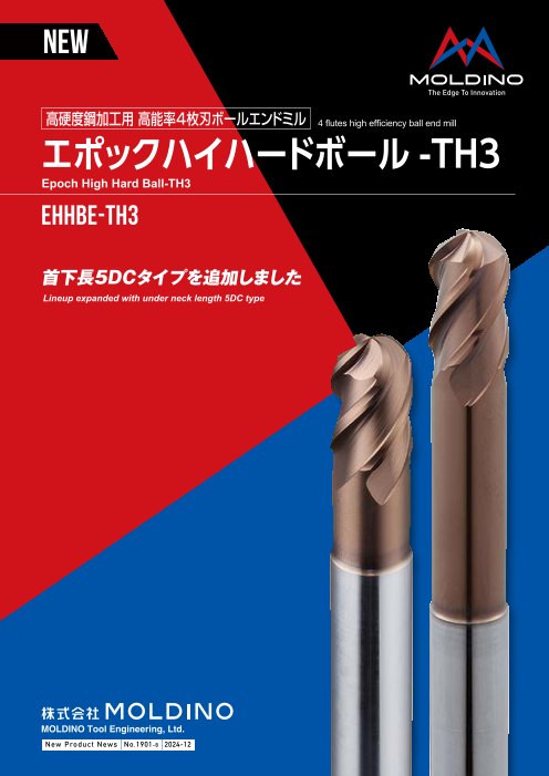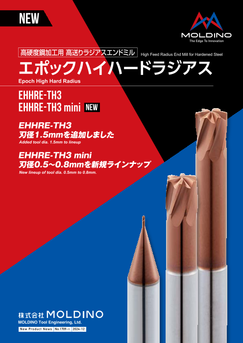 ・高硬度鋼加工において、高送り加工を実現し工具寿命を大幅に向上します ・EHHRE-TH3 mini:刃径0.5mm~0.8mm ・EHHRE-TH3:刃径1mm~12mm をラインナップ ・多刃設計のエンドミルが小型精密金型でも高能率な加工を可能...