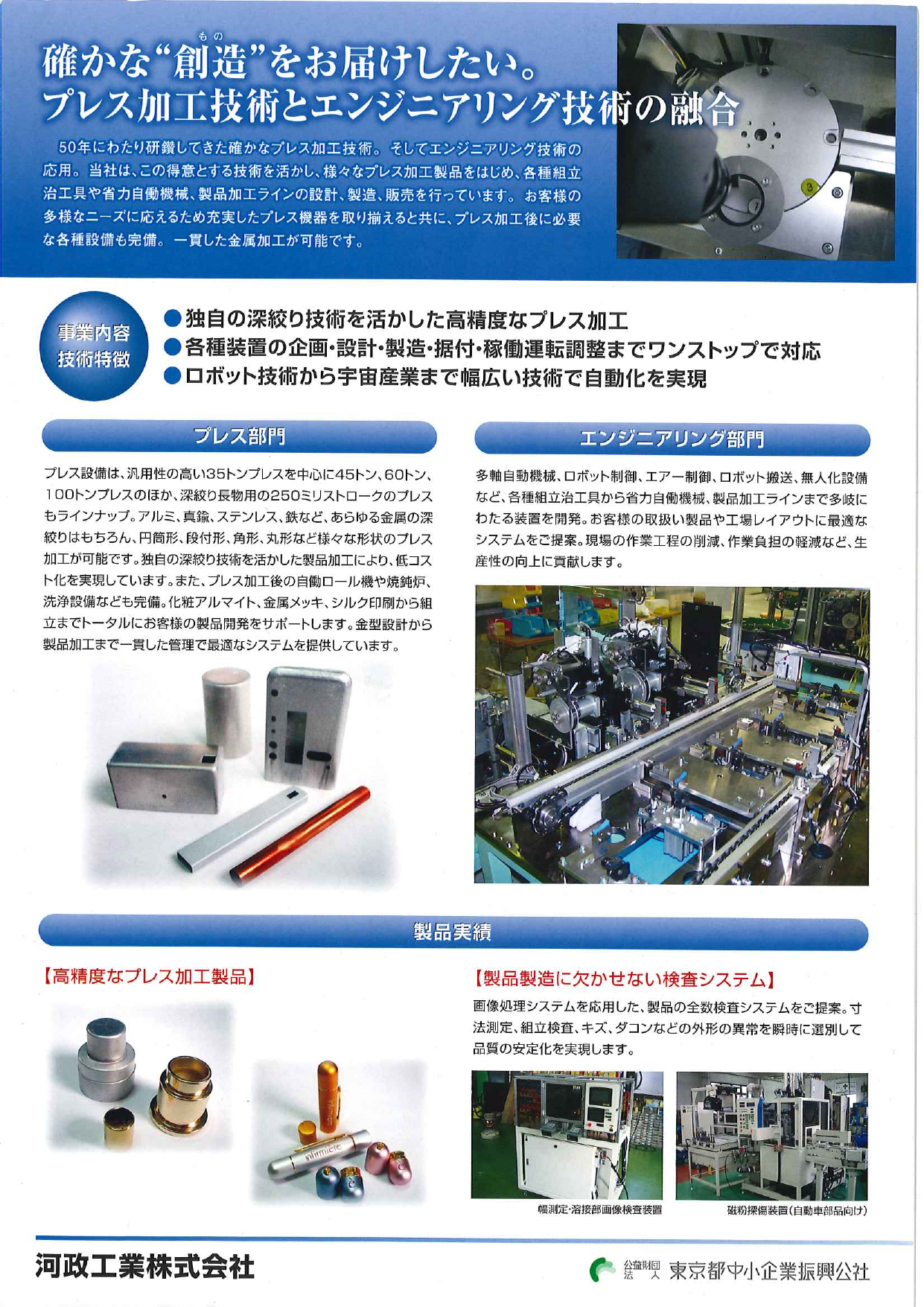 ◆当社は、独自の深絞り技術を生かし、より低コストの製品加工に取り組んでおります。 ◆工場設備においては、汎用性の高い35tonプレスを中心に45ton、60ton、100tonプレスの他、深絞り長物用の250mmストロークのプレスも取り揃えておりま...