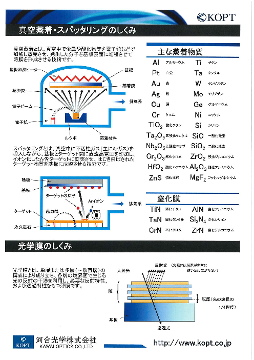 真空蒸着・スパッタリンングのしくみ/光学膜のしくみのご紹介です