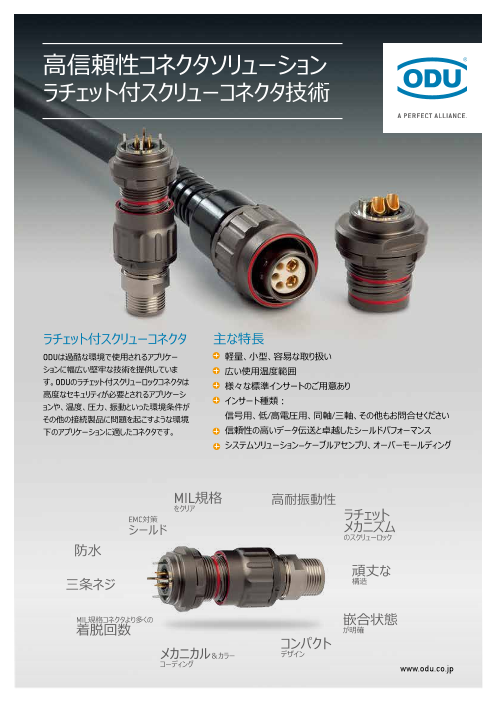 【掲載製品】 ◆ストレインリリーフハウジング Silver-Line ODU独自のスピンドルロッキングは、コンパクトなサイズ、高い精密性、人間工学に基づいた使いやすさを備え、様々なアプリケーションにおいて確かな実績を有します。 ◆スピンドルロッキン...
