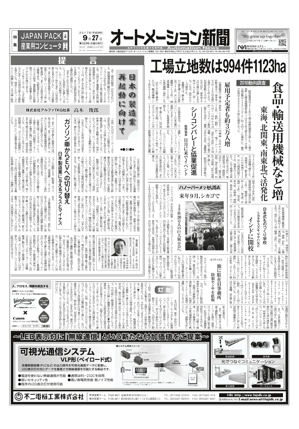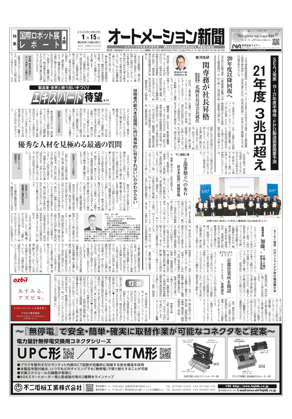 第9回ロボット大賞、FA・センサ、電磁開閉器特集、安川電機サーボモータ新製品ほか