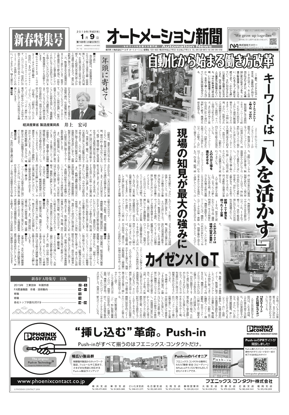 <掲載内容> 自動化から始まる働き方改革、キーワードは「人を活かす」 【2019年 年頭に寄せて】経済産業省 製造産業局長 井上 宏司 【2019年 年頭所感】日本電気制御機器工業会、業界の更なる発展に貢献を 【各社トップが語る2019】三菱電機...