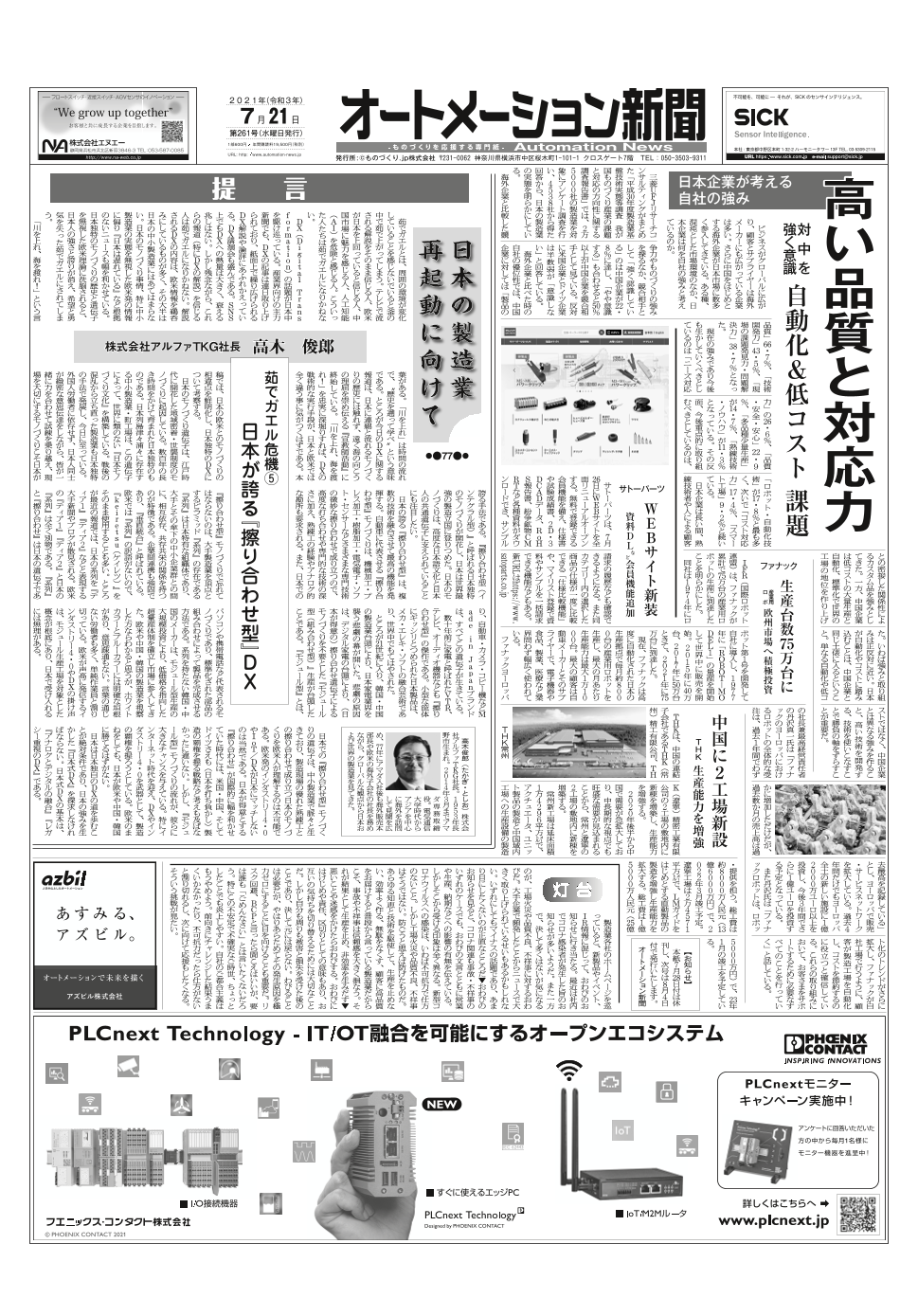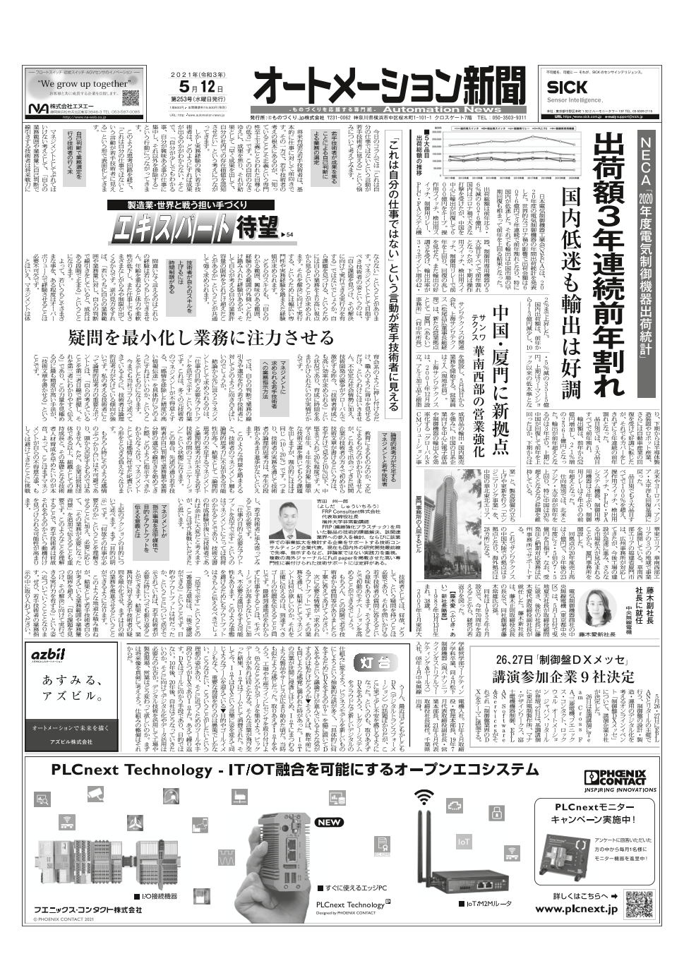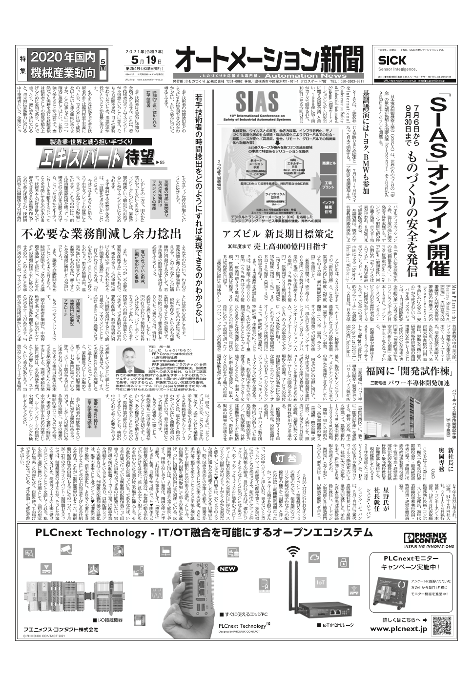 SIASオンライン開催、アズビル新長期目標策定、フェニックス・コンタクト特集ほか