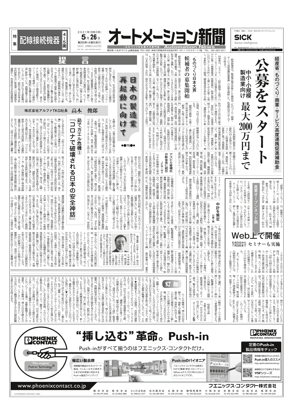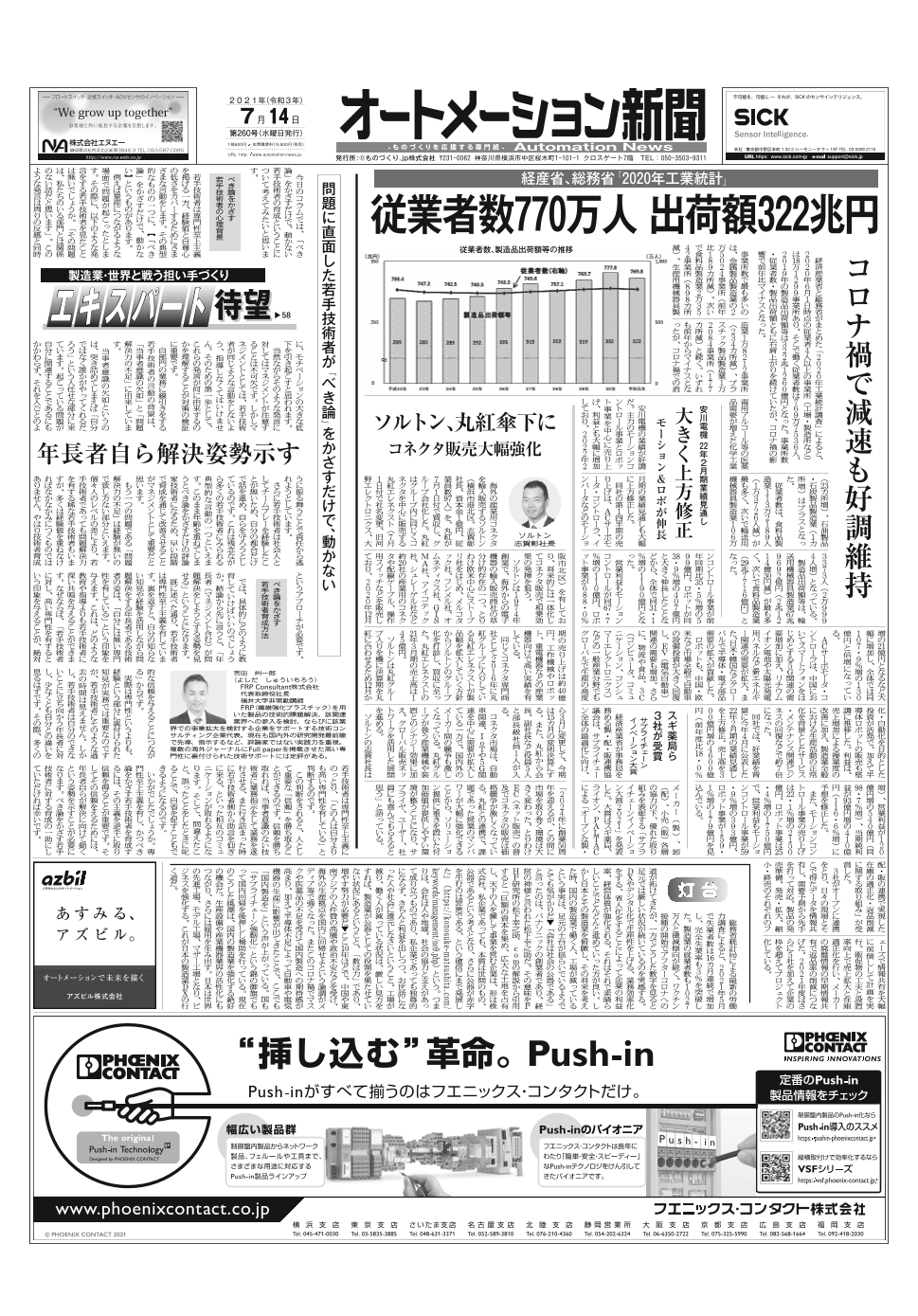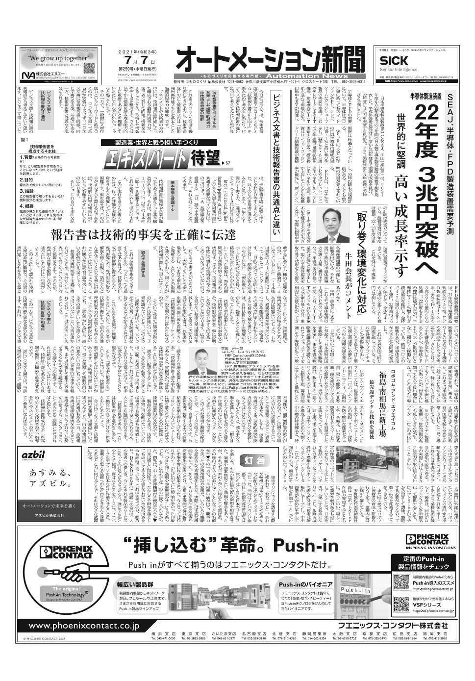 SIASオンライン開催、アズビル新長期目標策定、フェニックス・コンタクト特集ほか