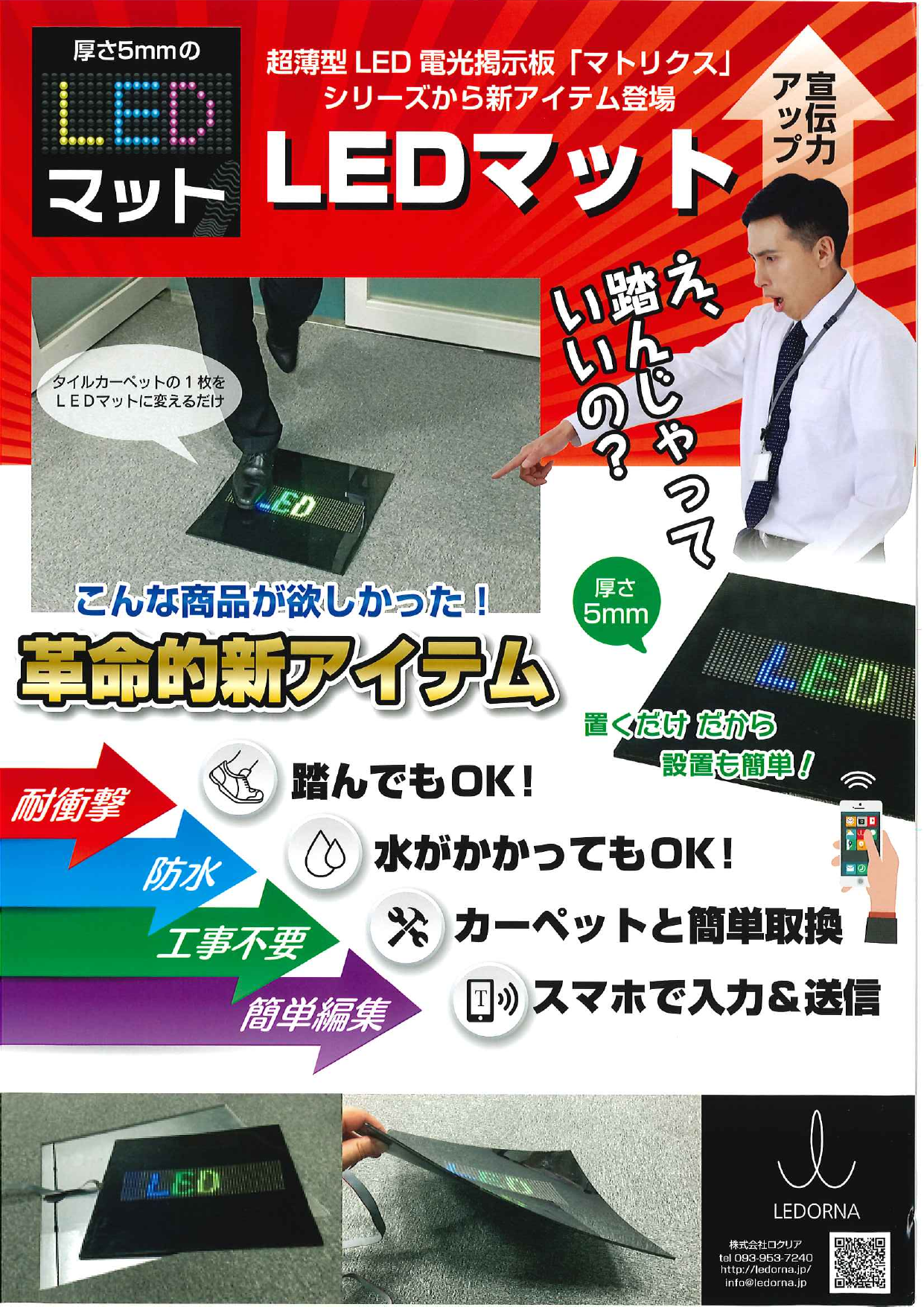 革新的新アイテム ・宣伝力アップ ・踏んでもOK ・水がかかってもOK ・置くだけだから設置も簡単 ・スマホで入力送信
