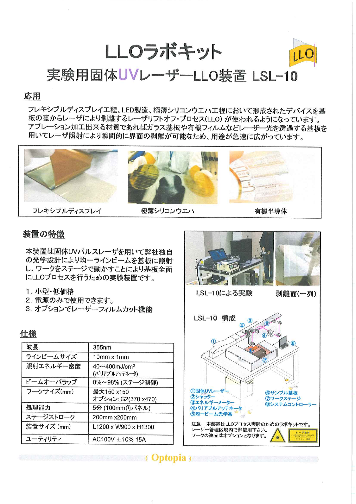 ■応用 フレキシブルディスプレイ工程、LED製造、極薄シリコンウエハ工程において形成されたデバイスを基板の裏からレーザーにより剥離するレーザリフトオフ・プロセス(LLO)が使われるようになっています。 アブレーション加工できる材質であればガラス基板や...