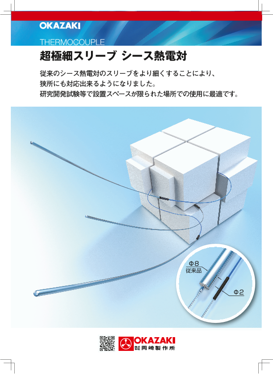 従来のシース熱電対のスリーブをより細くすることにより、 狭所にも対応出来るようになりました。 研究開発試験等で設置スペースが限られた場所での使用に最適です。
