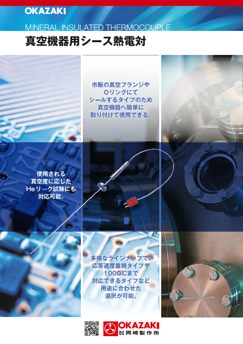 ●市販の真空フランジやOリングにてシールするタイプの為、真空機器へ簡単に取り付けが可能。 ●使用される真空度に応じたHeリーク試験にも対応可能。 ●シース熱電対端末に気密端子を設け、全体を真空機器内に設置できるタイプもあります。