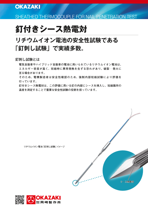 【特許取得済】リチウムイオン電池の安全性試験である「釘刺し試験」で実績多数。