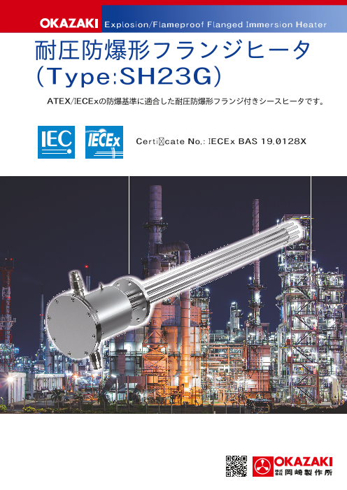 ATEX/IECExの防爆基準に適合した耐圧防爆形フランジ付きシースヒータです。