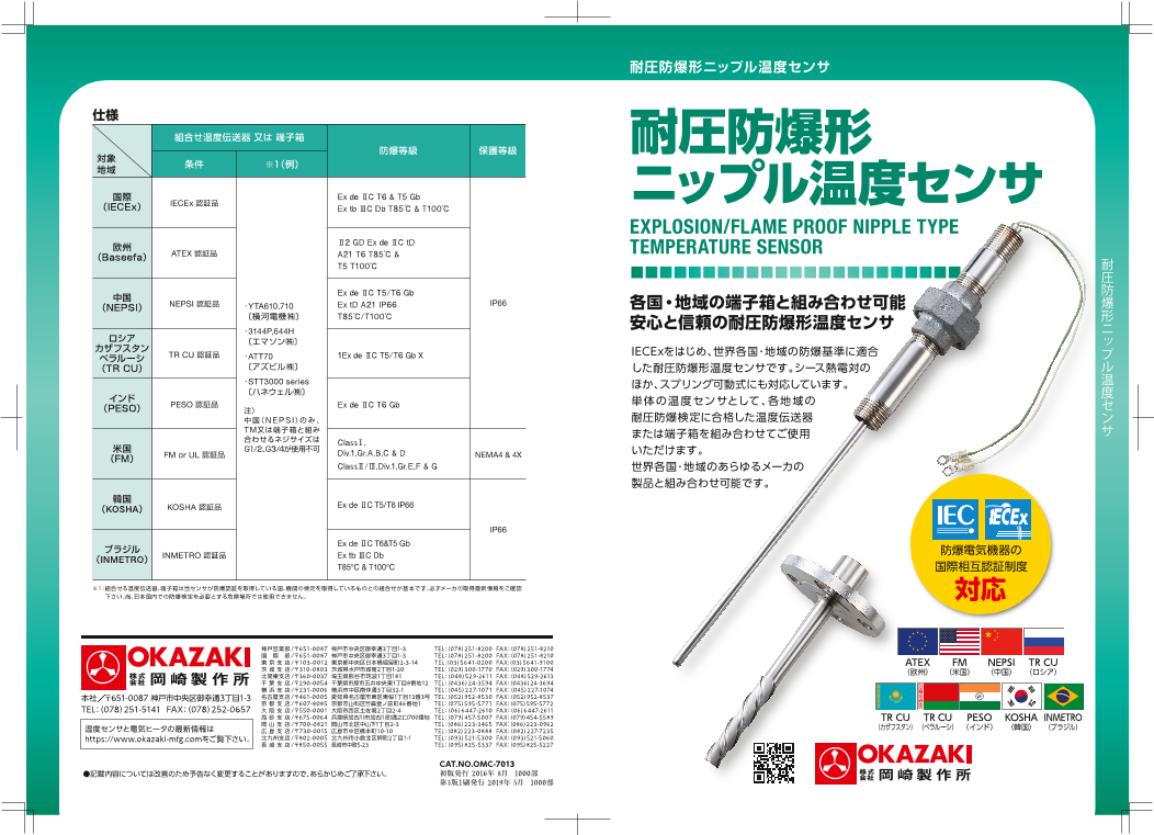 各国・地域の端子箱と組み合わせ可能 安心と信頼の耐圧防爆形温度センサ。