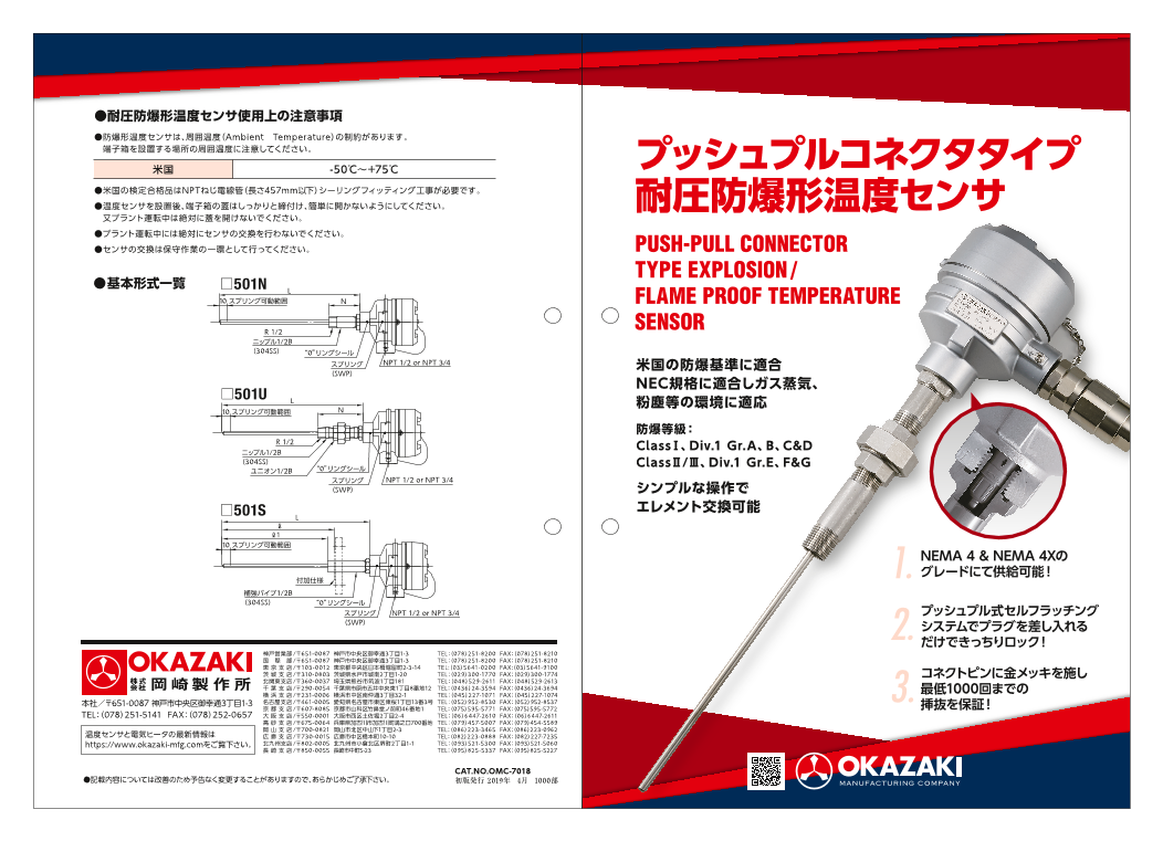 IECExをはじめ、世界各国・地域の防爆基準に適合した耐圧防爆形温度センサです。 シース熱電対のほか、スプリング可動式にも対応しています。 単体の温度センサとして、各地域の耐圧防爆検定に合格した温度伝送器または端子箱を組み合わせてご使用いただけます。...