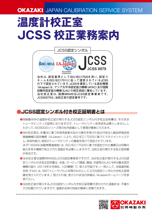 ★JCSS認定シンボル付き校正証明書が発行可能です。 ★JCSS認定シンボル付き校正証明書はmそのままトレーサビリティの照明となる為、 トレーサビリティ体系図を必要としません。 ★当社校正室が発行するJCSS認定シンボル付き校正証明書が添...
