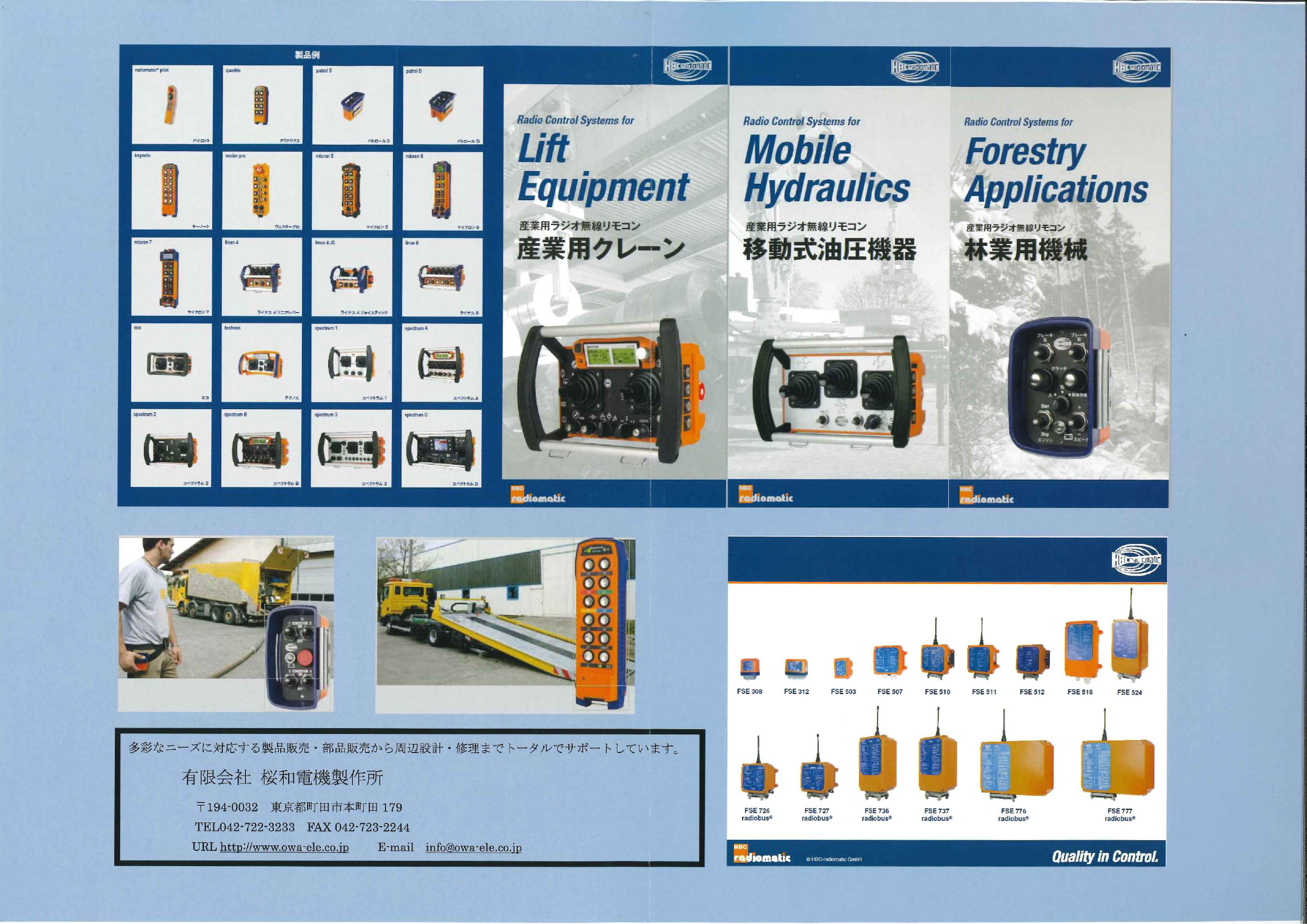 【掲載製品】 ・産業用クレーン用送信機器 ・移動式油圧機器用送信機器 ・林業用機械用送信機器