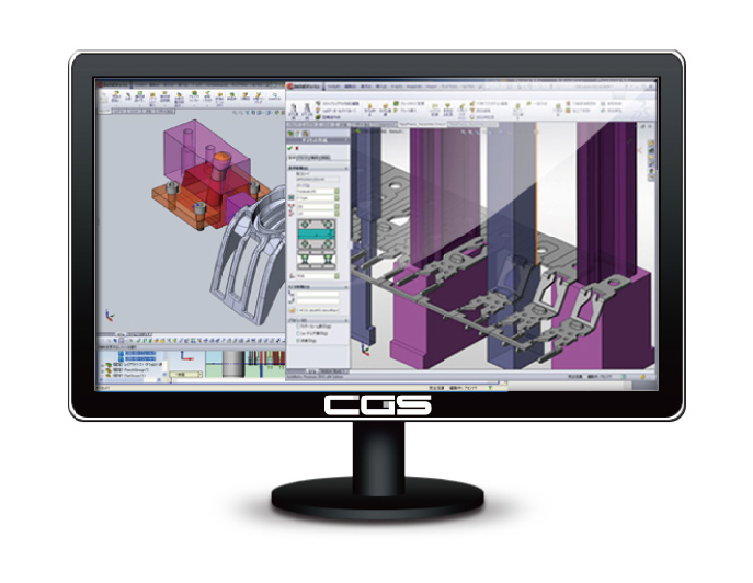CG Series は、ミッドレンジ3次元モデラーの「SolidWorks」に金型専用モジュールを組み込むことにより、金型立体設計~図面作成、さらに立体モデル~NCデータ作成まで、一気通貫の3次元統合型CAD/CAMシステムです。