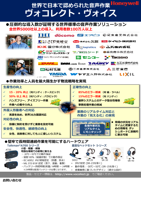 圧倒的な導入数が証明する世界標準の音声作業ソリューション。作業効率と人員を最大限生か...
