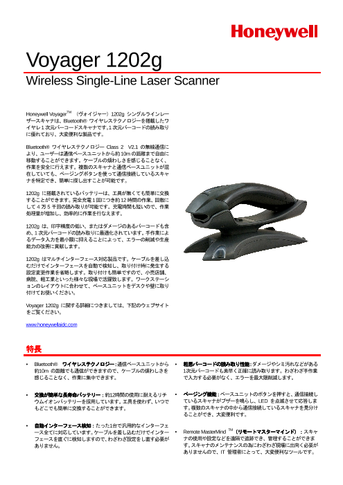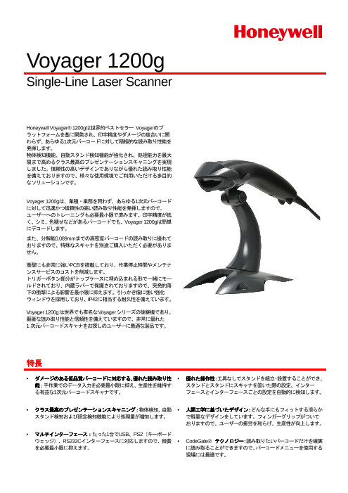 Voyager1202gは、物体検知機能、自動スタンド検知機能の強化は勿論、 何よりも読み取り性能に注力して開発されたハンドレーザースキャナーです。 印字精度の低いもの、色褪せたバーコードやダメージバーコードの読み取りに抜群の性能を発揮し、作業の効...