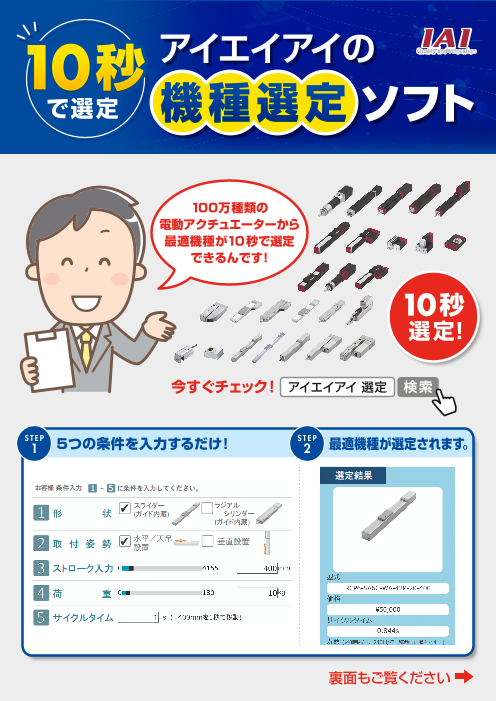 100万種類の電動アクチュエーターから最適機種が10秒で選定できるんです!
