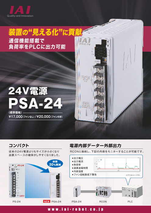 ◆コンパクト 従来の24V電源よりもサイズが小さくなり設置スペースの確保がしやすくなりました。 ◆電源内部データー外部出力 RCONと接続し、下記の内容をモニターすることが可能です。 ◆電源カリキュレーター アクチュエーター動作の事前シミュレー...