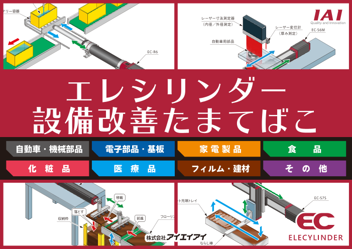 エレシリンダー®の導入事例をご紹介いたします。 ・自動車、機械部品 ・電子部品、基板 ・家電製品 ・食品 ・化粧品 ・医薬品 ・フィルム、建材 ・その他